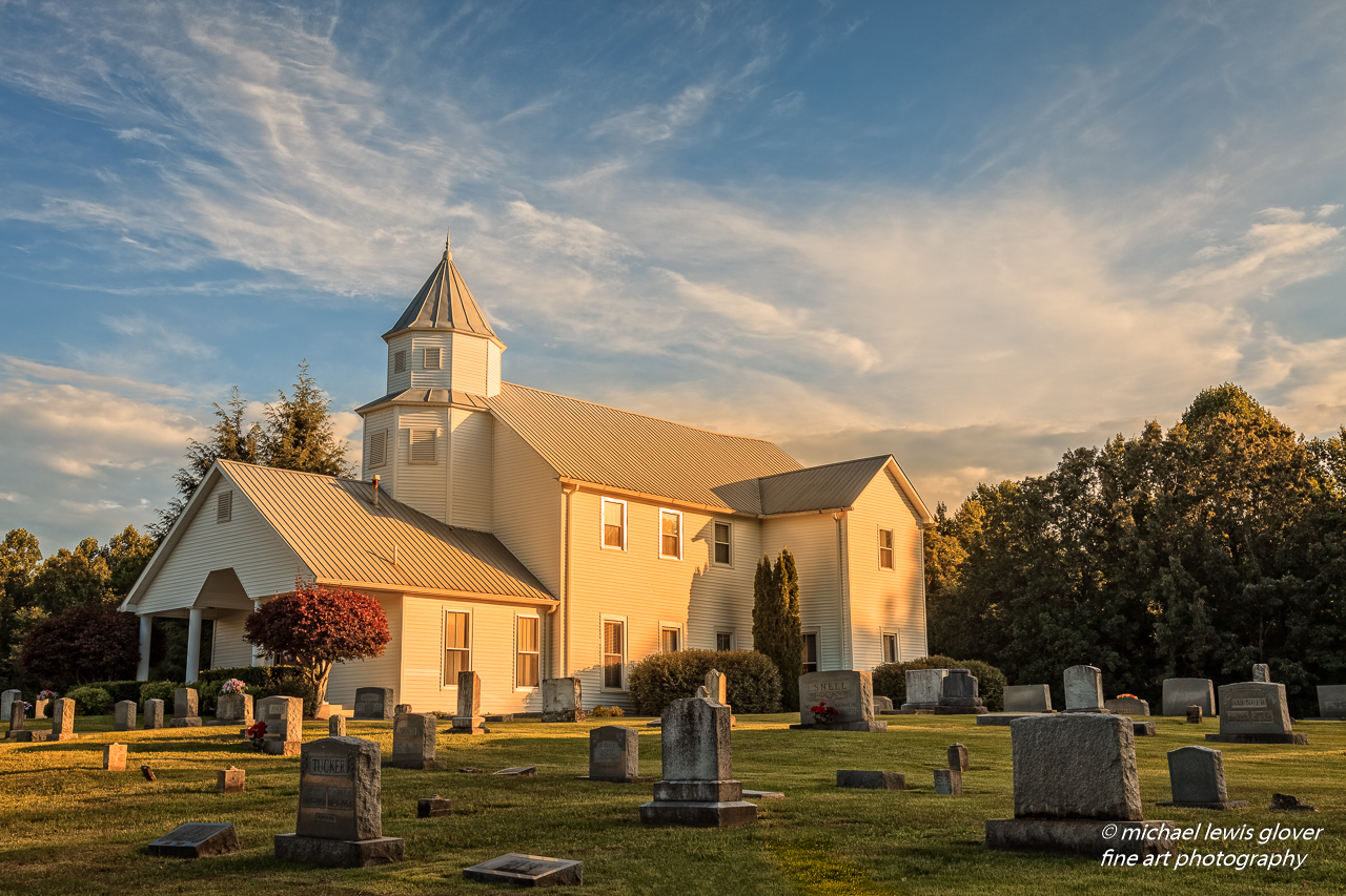 Well as luck would have it, at the end of this road was this beautiful church. The sun was low in the sky and the light was just perfect. I knew I needed to get my camera gear out and take some pictures. The angle was just right for the time of day. The golden glow was so awesome that I stopped shooting to just look at this fantastic scene in front of me. This is the kind of stuff I hope for.