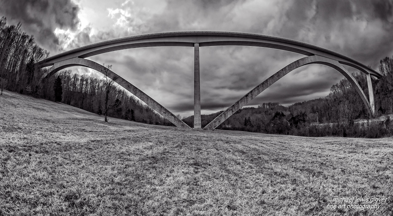 Once I settled on a view that I liked I setup my tripod to take some photos. With such a wide scene a standard lens was not doing the job of capturing the entire bridge in one shot. I decided to try out my 8mm fisheye lens. This was going to do the trick! The bridge itself is pretty much straight across, however the fisheye lens added in some distortion which bowed it out slightly. I thought it looked cool so I kept shooting from different perspectives until I found what I liked.